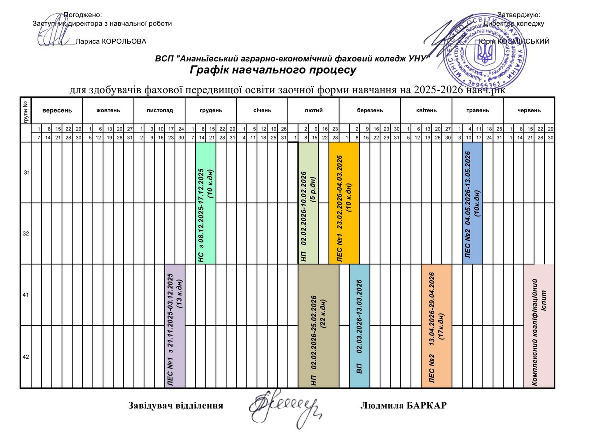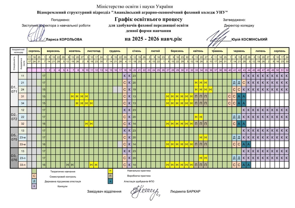 Графік освітнього процесу на 2025-26 н.рік