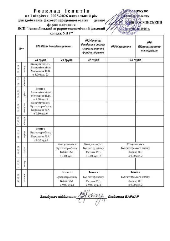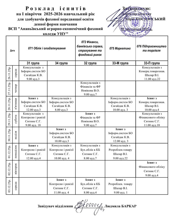 Розклад іспитів III курс І півріччя 2025-2026 н.рік
